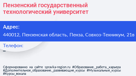 Пензенский государственный технологический университет по адресу 440012, Пензенская область, Пенза, Совхоз-Техникум, 21в в дальнейшем Организация, размещена в следующих категориях: