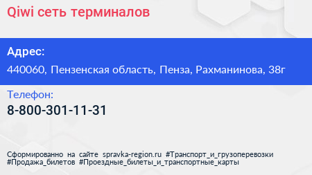 Qiwi, сеть терминалов по адресу 440060, Пензенская область, Пенза, Рахманинова, 38г в дальнейшем Организация, размещена в следующих категориях: