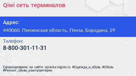 Qiwi, сеть терминалов по адресу 440060, Пензенская область, Пенза, Бородина, 29 в дальнейшем Организация, размещена в следующих категориях: