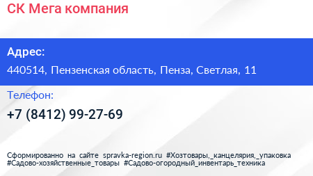 СК Мега, компания по адресу 440514, Пензенская область, Пенза, Светлая, 11 в дальнейшем Организация, размещена в следующих категориях:
