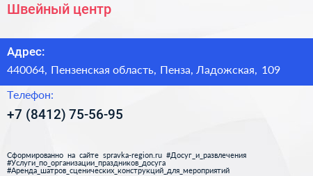 Швейный центр по адресу 440064, Пензенская область, Пенза, Ладожская, 109 в дальнейшем Организация, размещена в следующих категориях: