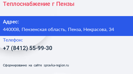 Теплоснабжение г. Пензы по адресу 440008, Пензенская область, Пенза, Некрасова, 34 в дальнейшем Организация, размещена в следующих категориях: