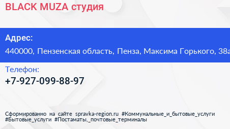 BLACK MUZA, студия по адресу 440000, Пензенская область, Пенза, Максима Горького, 38а в дальнейшем Организация, размещена в следующих категориях: