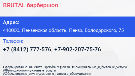 BRUTAL, барбершоп по адресу 440000, Пензенская область, Пенза, Володарского, 75 в дальнейшем Организация, размещена в следующих категориях:
