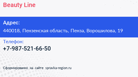 Beauty Line по адресу 440018, Пензенская область, Пенза, Ворошилова, 19 в дальнейшем Организация, размещена в следующих категориях: