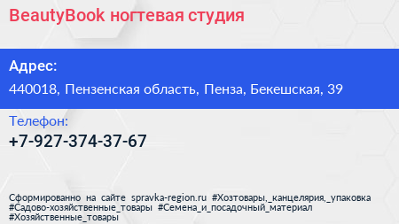 BeautyBook, ногтевая студия по адресу 440018, Пензенская область, Пенза, Бекешская, 39 в дальнейшем Организация, размещена в следующих категориях: