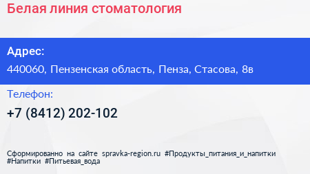 Белая линия, стоматология по адресу 440060, Пензенская область, Пенза, Стасова, 8в в дальнейшем Организация, размещена в следующих категориях: