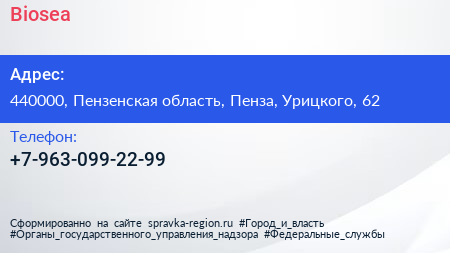 Biosea по адресу 440000, Пензенская область, Пенза, Урицкого, 62 в дальнейшем Организация, размещена в следующих категориях: