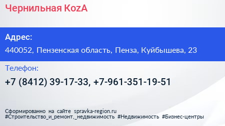 Чернильная КоzA по адресу 440052, Пензенская область, Пенза, Куйбышева, 23 в дальнейшем Организация, размещена в следующих категориях: