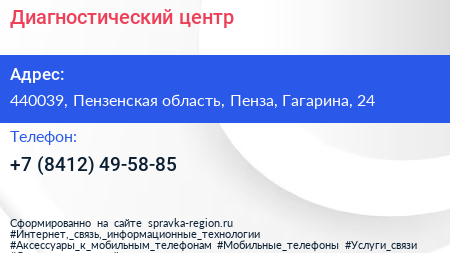 Диагностический центр по адресу 440039, Пензенская область, Пенза, Гагарина, 24 в дальнейшем Организация, размещена в следующих категориях: