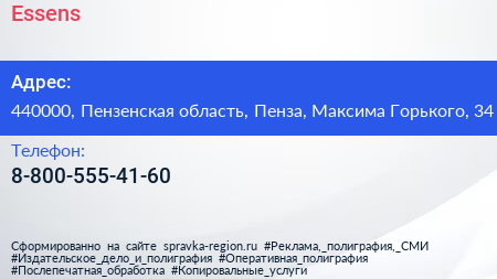 Essens по адресу 440000, Пензенская область, Пенза, Максима Горького, 34 в дальнейшем Организация, размещена в следующих категориях: