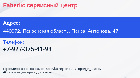 Faberlic, сервисный центр по адресу 440072, Пензенская область, Пенза, Антонова, 47 в дальнейшем Организация, размещена в следующих категориях: