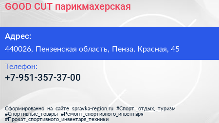 GOOD CUT, парикмахерская по адресу 440026, Пензенская область, Пенза, Красная, 45 в дальнейшем Организация, размещена в следующих категориях: