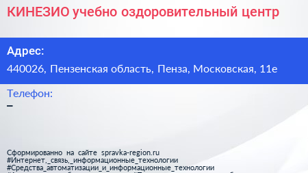 КИНЕЗИО, учебно-оздоровительный центр по адресу 440026, Пензенская область, Пенза, Московская, 11е в дальнейшем Организация, размещена в следующих категориях: