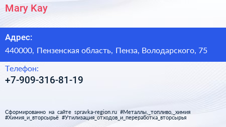 Mary Kay по адресу 440000, Пензенская область, Пенза, Володарского, 75 в дальнейшем Организация, размещена в следующих категориях: