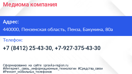 Медиома, компания по адресу 440000, Пензенская область, Пенза, Бакунина, 80а в дальнейшем Организация, размещена в следующих категориях: