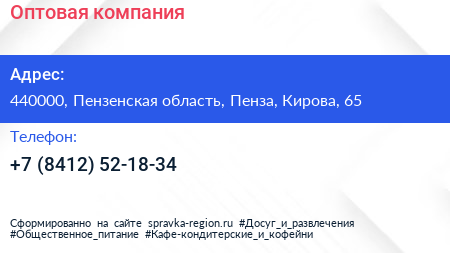Оптовая компания по адресу 440000, Пензенская область, Пенза, Кирова, 65 в дальнейшем Организация, размещена в следующих категориях: