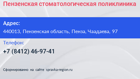 Пензенская стоматологическая поликлиника по адресу 440013, Пензенская область, Пенза, Чаадаева, 97 в дальнейшем Организация, размещена в следующих категориях: