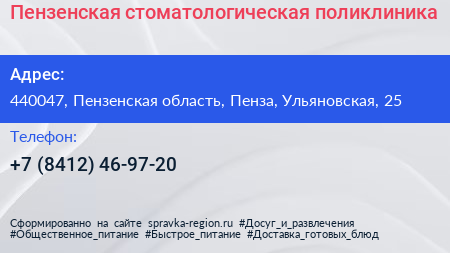 Пензенская стоматологическая поликлиника по адресу 440047, Пензенская область, Пенза, Ульяновская, 25 в дальнейшем Организация, размещена в следующих категориях:
