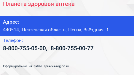 Планета здоровья, аптека по адресу 440514, Пензенская область, Пенза, Звёздная, 1 в дальнейшем Организация, размещена в следующих категориях: