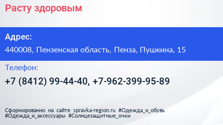 Расту здоровым по адресу 440008, Пензенская область, Пенза, Пушкина, 15 в дальнейшем Организация, размещена в следующих категориях: