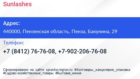 Sunlashes по адресу 440000, Пензенская область, Пенза, Бакунина, 29 в дальнейшем Организация, размещена в следующих категориях: