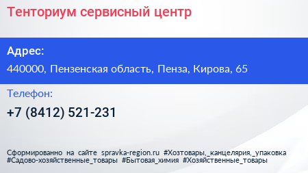 Тенториум, сервисный центр по адресу 440000, Пензенская область, Пенза, Кирова, 65 в дальнейшем Организация, размещена в следующих категориях: