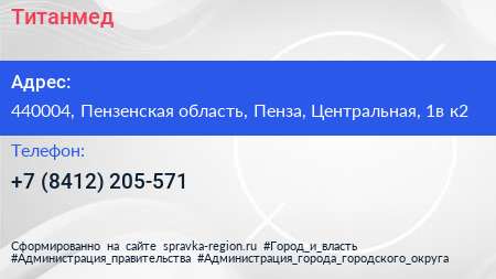 Титанмед по адресу 440004, Пензенская область, Пенза, Центральная, 1в к2 в дальнейшем Организация, размещена в следующих категориях: