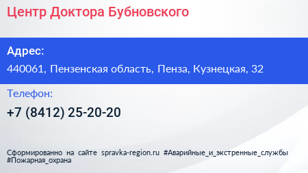 Центр Доктора Бубновского по адресу 440061, Пензенская область, Пенза, Кузнецкая, 32 в дальнейшем Организация, размещена в следующих категориях: