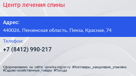 Центр лечения спины по адресу 440026, Пензенская область, Пенза, Красная, 74 в дальнейшем Организация, размещена в следующих категориях: