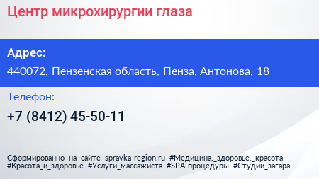 Центр микрохирургии глаза по адресу 440072, Пензенская область, Пенза, Антонова, 18 в дальнейшем Организация, размещена в следующих категориях: