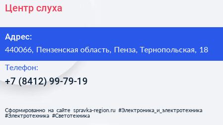Центр слуха по адресу 440066, Пензенская область, Пенза, Тернопольская, 18 в дальнейшем Организация, размещена в следующих категориях: