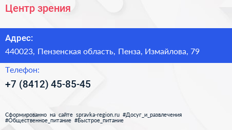 Центр зрения по адресу 440023, Пензенская область, Пенза, Измайлова, 79 в дальнейшем Организация, размещена в следующих категориях: