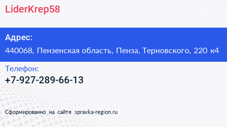 LiderKrep58 по адресу 440068, Пензенская область, Пенза, Терновского, 220 к4 в дальнейшем Организация, размещена в следующих категориях: