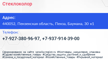 Стеклоколор по адресу 440052, Пензенская область, Пенза, Баумана, 30 к1 в дальнейшем Организация, размещена в следующих категориях: