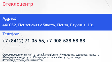 Стеклоцентр по адресу 440052, Пензенская область, Пенза, Баумана, 101 в дальнейшем Организация, размещена в следующих категориях: