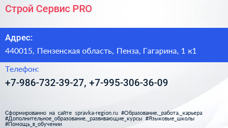 Строй Сервис PRO по адресу 440015, Пензенская область, Пенза, Гагарина, 1 к1 в дальнейшем Организация, размещена в следующих категориях:
