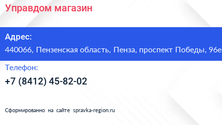 Управдом, магазин по адресу 440066, Пензенская область, Пенза, проспект Победы, 96е в дальнейшем Организация, размещена в следующих категориях: