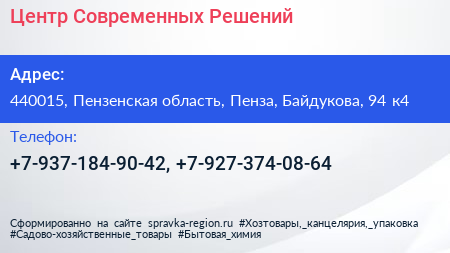Центр Современных Решений по адресу 440015, Пензенская область, Пенза, Байдукова, 94 к4 в дальнейшем Организация, размещена в следующих категориях: