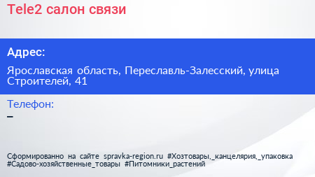 Tele2, салон связи по адресу Ярославская область, Переславль-Залесский, улица Строителей, 41 в дальнейшем Организация, размещена в следующих категориях: