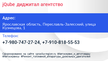 jQube, диджитал-агентство по адресу Ярославская область, Переславль-Залесский, улица Кузнецова, 1 в дальнейшем Организация, размещена в следующих категориях: