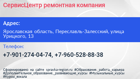 СервисЦентр, ремонтная компания по адресу Ярославская область, Переславль-Залесский, улица Урицкого, 13 в дальнейшем Организация, размещена в следующих категориях:
