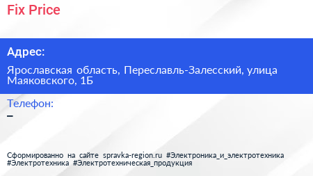 Fix Price по адресу Ярославская область, Переславль-Залесский, улица Маяковского, 1Б в дальнейшем Организация, размещена в следующих категориях: