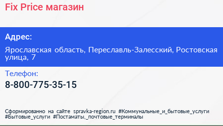Fix Price, магазин по адресу Ярославская область, Переславль-Залесский, Ростовская улица, 7 в дальнейшем Организация, размещена в следующих категориях: