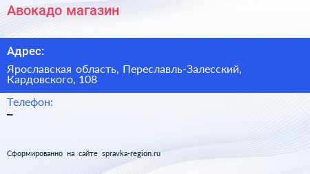 Авокадо, магазин по адресу Ярославская область, Переславль-Залесский, Кардовского, 108 в дальнейшем Организация, размещена в следующих категориях: