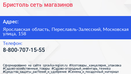 Бристоль, сеть магазинов по адресу Ярославская область, Переславль-Залесский, Московская улица, 158 в дальнейшем Организация, размещена в следующих категориях: