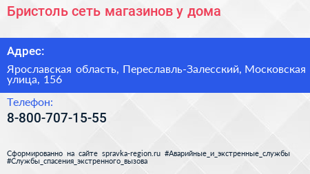 Бристоль, сеть магазинов у дома по адресу Ярославская область, Переславль-Залесский, Московская улица, 156 в дальнейшем Организация, размещена в следующих категориях: