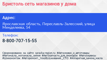 Бристоль, сеть магазинов у дома по адресу Ярославская область, Переславль-Залесский, улица Менделеева, 54 в дальнейшем Организация, размещена в следующих категориях: