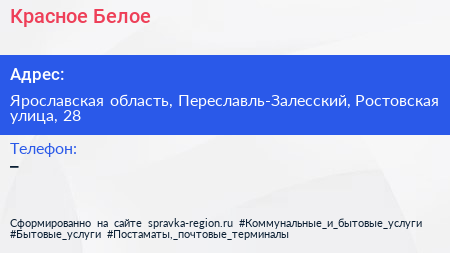 Красное & Белое по адресу Ярославская область, Переславль-Залесский, Ростовская улица, 28 в дальнейшем Организация, размещена в следующих категориях: