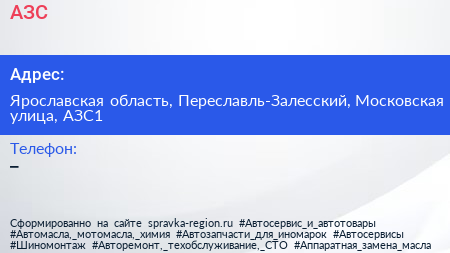 АЗС по адресу Ярославская область, Переславль-Залесский, Московская улица, АЗС1 в дальнейшем Организация, размещена в следующих категориях: